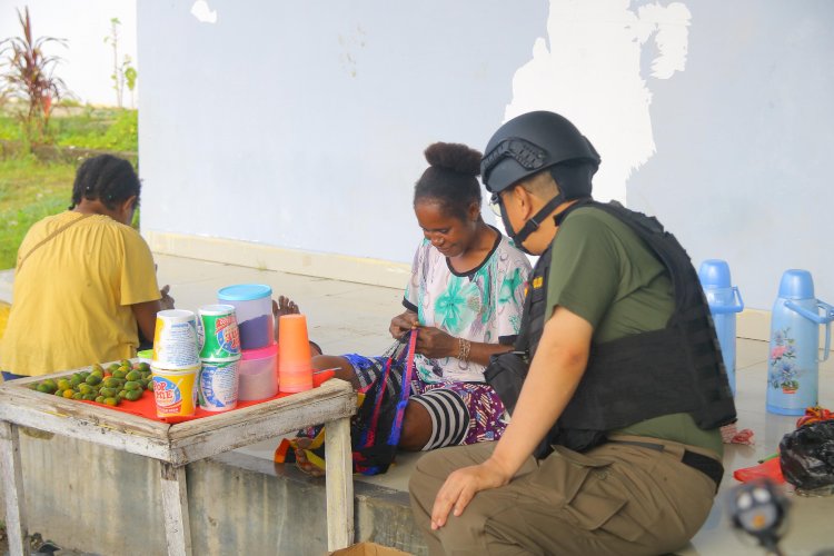 Momen bahagia semakin terasa ketika para pedagang lokal, terutama penjual pinang, menyambut kedatangan Kasatgas Humas Ops Damai Cartenz dengan senyum hangat yang menghiasi wajah mereka.