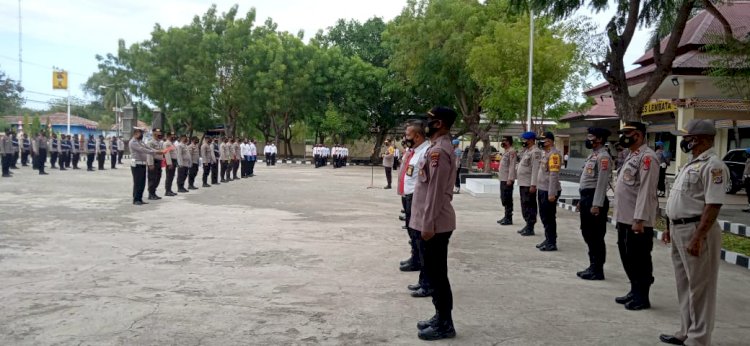 Tribratanewslembata - Kapolres Lembata AKBP Yoce Marten, SH., S.I.K., M.I.K., pimpin pelaksanaan Apel Pagi, Senin (13/09/2021) pukul 08:00 WITA dalam arahannya beliau memerintahkan Sat Sabhara untuk melakukan latihan Pengendalian Massa.