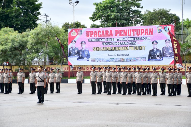 Kupang — Kapolda Nusa Tenggara Timur (NTT) Irjen Pol Dr. Rudi Darmoko, S.I.K., M.Si., memimpin langsung Upacara Penutupan Pendidikan Pembentukan Bintara Polri Angkatan ke-53 Tahun Anggaran 2025 yang berlangsung di Sekolah Polisi Negara (SPN) Polda NTT, Jalan Dodiklat No. 06, Oebobo, Kota Kupang, Rabu (24/12/2025) pagi.