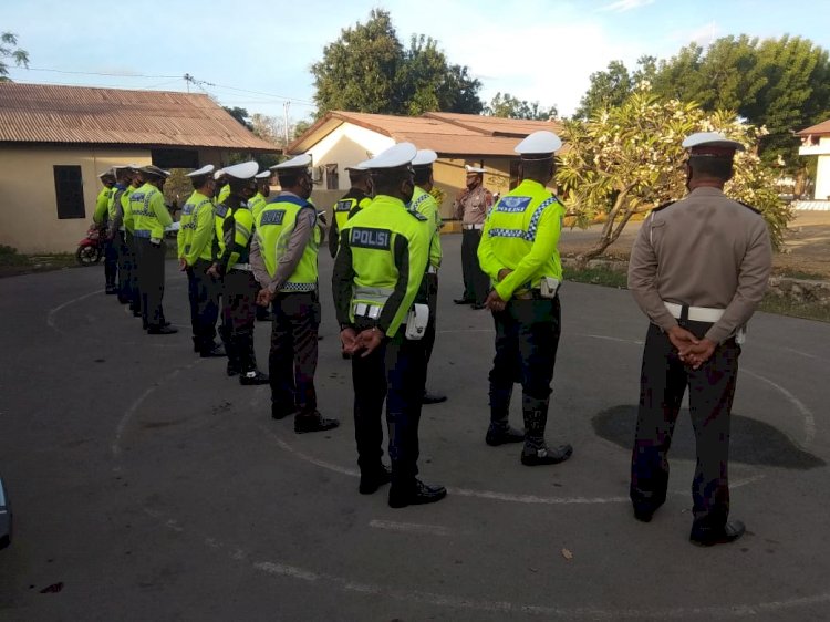 Sat Lantas Polres Lembata Laksanakan Apel Pagi Dilanjutkan Dengan Pengaturan Pagi.